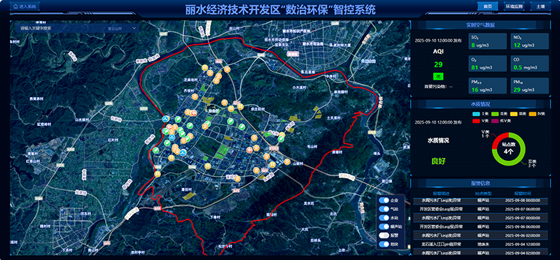 2020年,浙江省環保集團麗水生態環境科技有限公司以麗水市生態環境質量監測網絡項目為基石成立,依托先進的GIS與數據可視化技術,精心打造了全域生態環境監測預警系統。該系統共接收474個站點數據,其中麗水環科自建站點329個,實時匯聚了全市水域、大氣、噪聲、輻射、雷達等多元監測數據,日均處理數據30萬條,通過智能感知網絡實現全要素環境數據的統一管理與協同分析,使被動的環境治理轉向主動的環境預警。