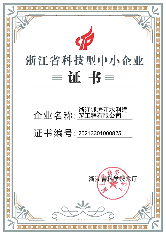 省科技型中小企業證書-浙錢水建