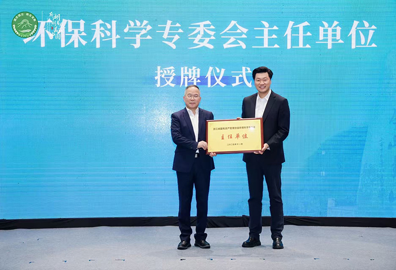 會上,浙江省國資協會常務副會長胡信才為環保科學專委會主任單位浙江省環保集團授牌。