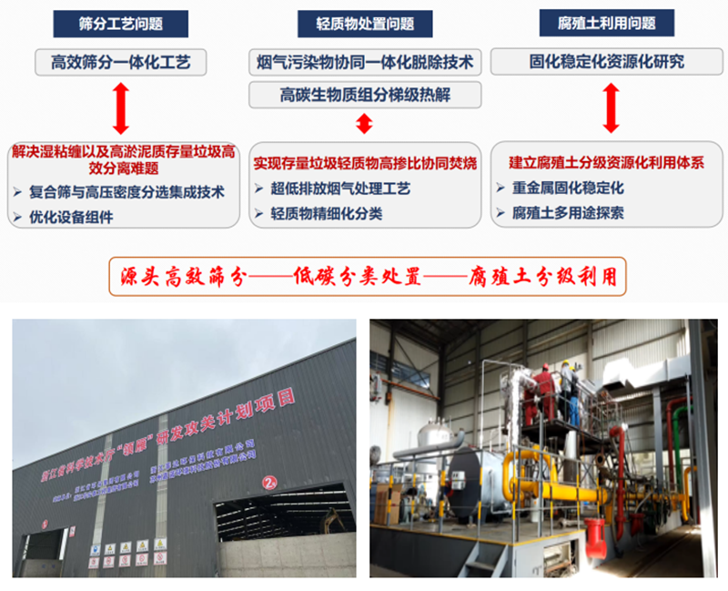 該項(xiàng)目針對(duì)生活垃圾填埋場(chǎng)開(kāi)挖治理工程中篩分效率低、資源化利用難等痛點(diǎn),創(chuàng)新提出“源頭高效篩分—低碳分類處置—腐殖土分級(jí)利用”系統(tǒng)性解決方案。通過(guò)優(yōu)化機(jī)械篩分機(jī)制、開(kāi)發(fā)高效輕質(zhì)可燃物熱解系統(tǒng)、構(gòu)建腐殖土分級(jí)利用體系,顯著提升篩分效率,大幅降低存量垃圾治理成本,并將存量垃圾中高碳生物質(zhì)組分轉(zhuǎn)化為可燃?xì)怏w、液體等更高經(jīng)濟(jì)價(jià)值的產(chǎn)品。該技術(shù)方案已在示范項(xiàng)目成功應(yīng)用,取得了良好的經(jīng)濟(jì)和社會(huì)效益。