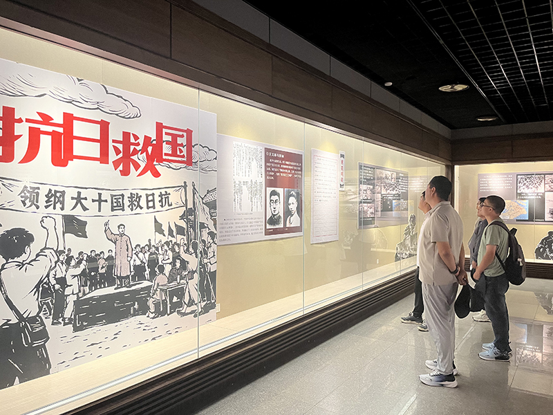 在影像展區(qū),黨員們駐足觀看抗戰(zhàn)主題視頻,畫面中炮火紛飛的戰(zhàn)場(chǎng)、群眾支援前線的熱血場(chǎng)景、戰(zhàn)士們沖鋒陷陣的堅(jiān)毅身影,仿佛將大家?guī)Щ啬莻€(gè)救亡圖存的艱難年代。從吳興縣私立縐業(yè)小學(xué)師生捐購(gòu)“中華兒童號(hào)”飛機(jī)的赤誠(chéng)義舉,到愛(ài)國(guó)青年創(chuàng)辦《國(guó)魂》快報(bào)傳遞抗日火種;從郎玉麟、李泉生率領(lǐng)武裝部隊(duì)奮勇殲敵的壯烈場(chǎng)景,到新四軍第六師第十六旅開(kāi)辟郎廣長(zhǎng)敵后抗日根據(jù)地的戰(zhàn)略智慧,每一段故事都讓黨員們深刻感受到湖州人民在黨的領(lǐng)導(dǎo)下,不畏強(qiáng)敵、團(tuán)結(jié)抗?fàn)幍拿褡鍤夤?jié)。
